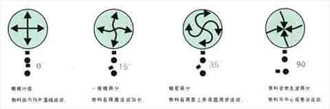 1.改變上下重錘的相位角,可以改變篩網(wǎng)上物料的運(yùn)動(dòng)軌跡和停留時(shí)間。為使篩機(jī)適應(yīng)各種物料所需的分離狀態(tài),如物料的分布、處理量、分離效率、過(guò)網(wǎng)率等各種變化,應(yīng)將它調(diào)整到好的狀態(tài)。