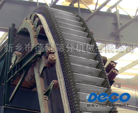 1、大傾角皮帶輸送機(jī)為一般用途的散狀物料連續(xù)輸送設(shè)備,但采用的是具有波狀擋邊和橫隔板的輸送帶。因此,特別適用于大傾角及垂直90°輸送。